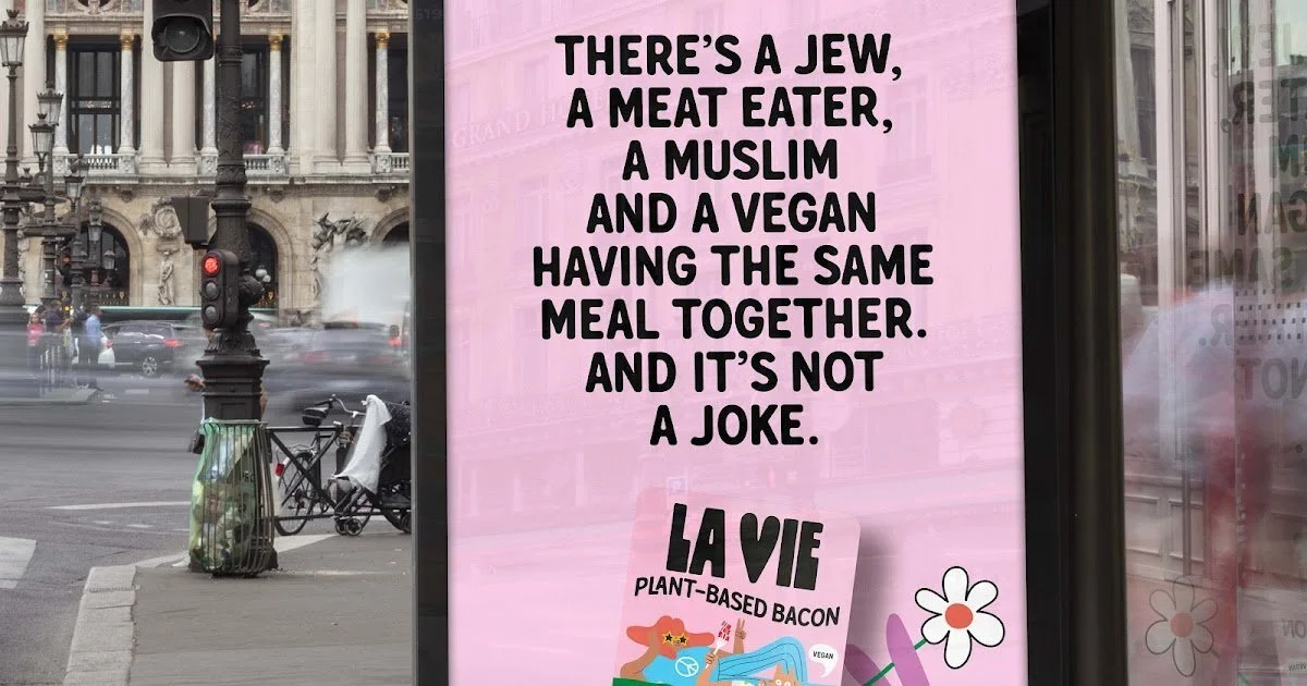 La Vie does plant-based bacon. Their campaign instantly caught my eye, not least because you don’t normally see the words Jew or Muslim in an ad.