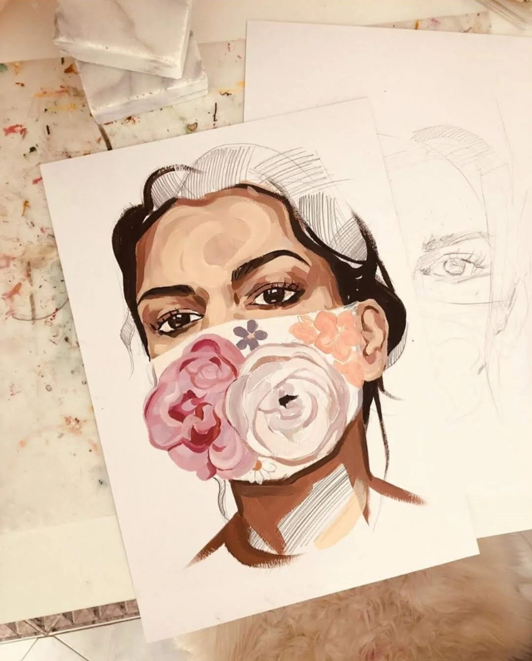 HANA: I loved how Vai approached me and how she immediately saw potential in the first flower mask portrait I made. That’s what I love about sharing my work on Instagram - you never know where one drawing or painting might take you. I never had any doubts or difficulties with working with her and it seems like we’ve been friends for years! The most difficult part was the launch itself because there are always those little worries somewhere in the back of your head about the success of the project but I’m enjoying the whole process and know we’re doing the right thing.