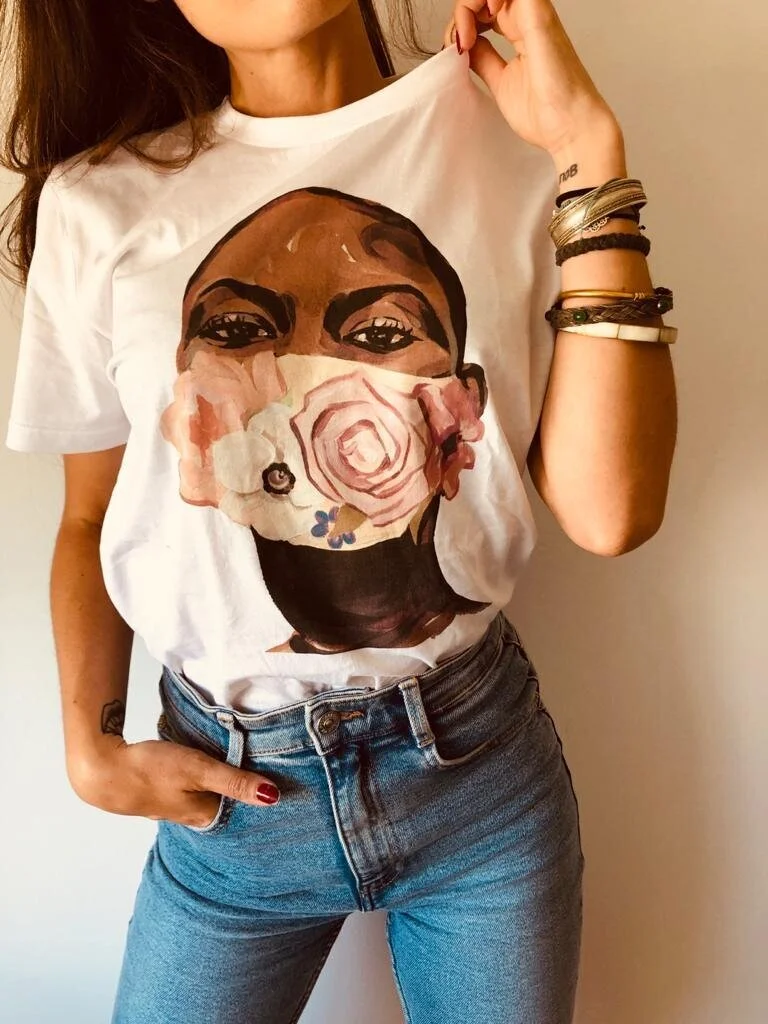 VAI: I’m that kind of person who always lets people know when I like what they do; whether it’s artwork, clothing, or a shared idea. So, BLUM came to be after Hana painted her first flower mask and posted it on her Instagram account during the beginning of COVID-19 quarantine in Portugal. I’ve been following Hana's work for quite some time and just had to reach out. I felt like we could actually use it for something greater. We got on a call and two months later BLUM’s 1st Edition print t-shirts were live.